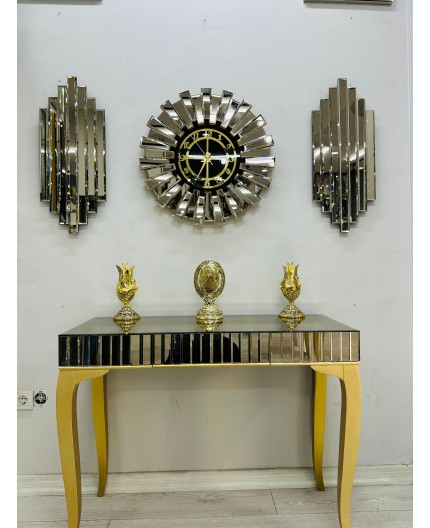 İKİ ADET 68x28 cm DEKOR AYNA 1 ADET ÇAP SAAT SETİ