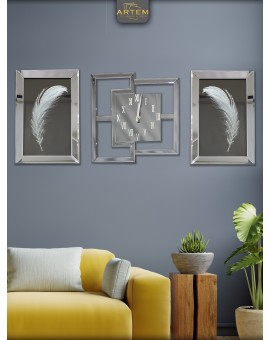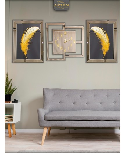BİR ADET C KARE SAAT 68X68  CM  VE YAN TÜYLER 40X60 CM DİR